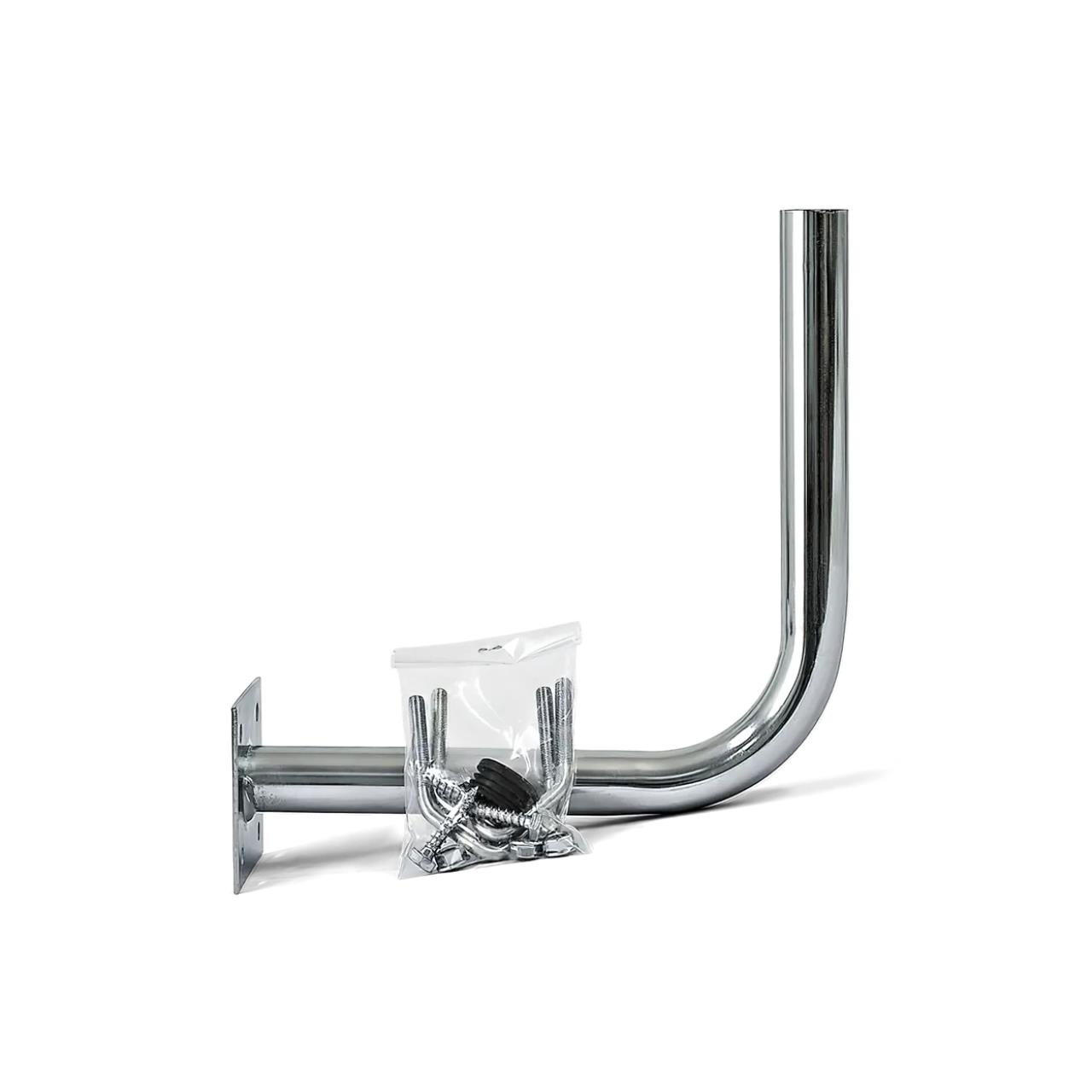 Wandhalterung für EPOS Referenzstation mit einem Durchmesser von 32 mm, Länge 300 mm und Höhe 250 mm. Für Wand- oder Mastbefestigung Ø30-60 mm. Stahl.